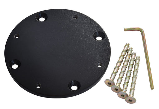 Umbrella OasisConsists of a round metal base plate bolted directly to the floor with 4 concrete screw bolts. Concrete flooring needs to be at least 4 inches deep...